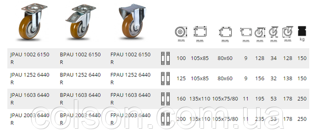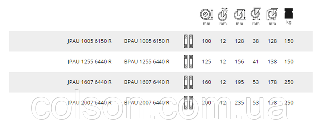 Колеса для малого навантаження, алюміній-поліуретанові AU Ergoform