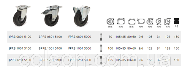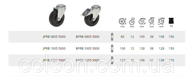 Колесо з еластичним чорним гумовим протектором. Колесо з посиленого скловолокном поліаміду з чорним гумовим протектором із кулькопідшипником. Робоча температура: -20 C/+80 °C Протектор твердість 65° за Шором А.