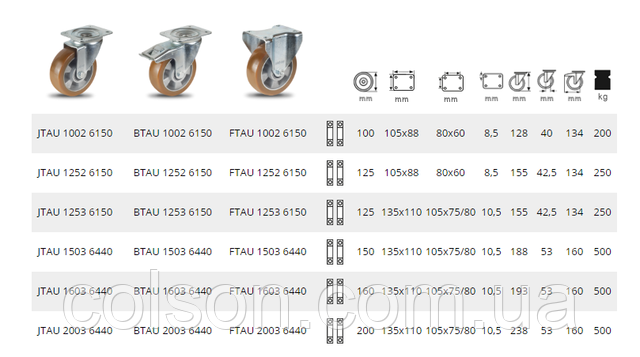 Колеса алюмінієве з поліуретановим протектором середньої AU-серії